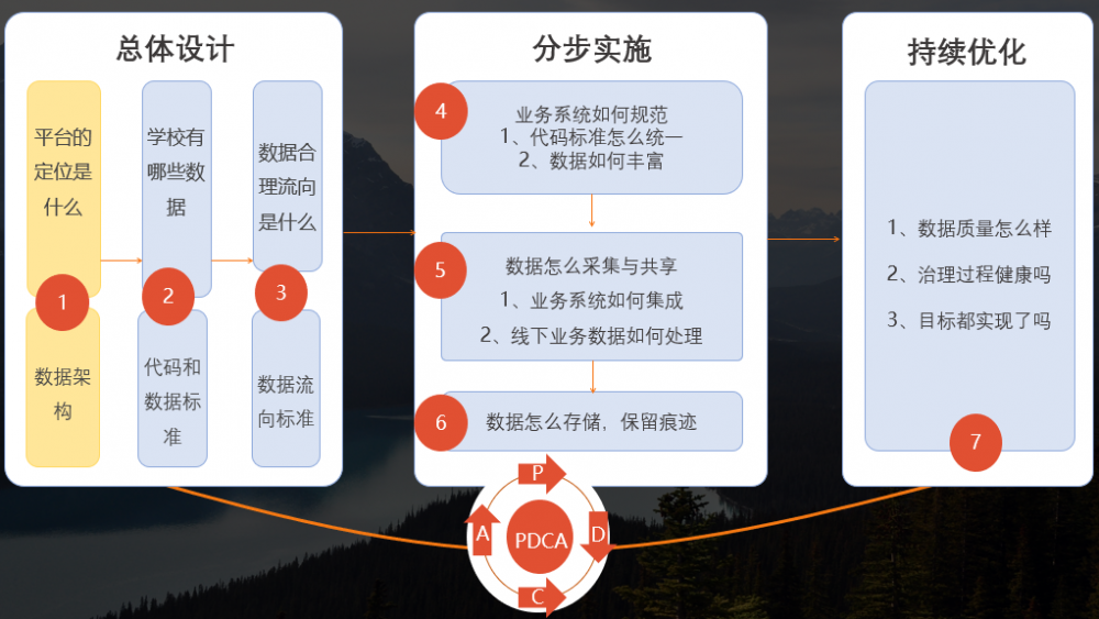 數(shù)據治理工作是一項長期持續(xù)的工作,各類標準,數(shù)據集成和開放,數(shù)據質量等情況都會隨著校園信息化的進程而時刻發(fā)生著變化,數(shù)據治理工作需要時刻根據變化的情況作出相應的措施,才能保證數(shù)據質量的持續(xù)改善,保護數(shù)據治理工作的前期成果。